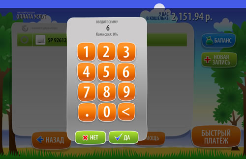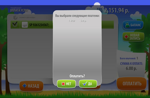 12. Вводим сумму: 6 руб. Нажимаем "Да"