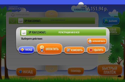 9. Попадаем в общий список платежей, активируем подготовленную запись