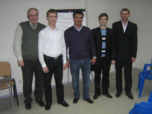 Директора (слева на право - Куница Алексей - МАПО Адлер, Вахрушев Иван - МАПО Сочи, Бахарев Глеб - президент КЗПП, Дмитрий Агапкин - Советник президента в ЮФО, Никонов Андрей - МАПО Краснодар)