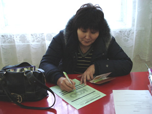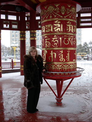 Татьяна Малышева (г.Саратов) крутит барабан с молитвами