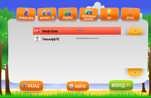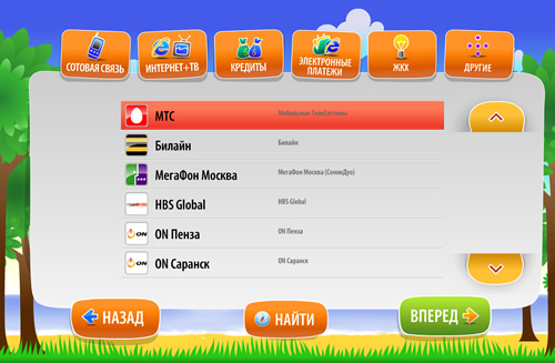 Выберите тип услуг, который Вы собираетесь оплатить. Вам будет предложено выбрать провайдера, которому предназначается платеж. (Рис. 6)